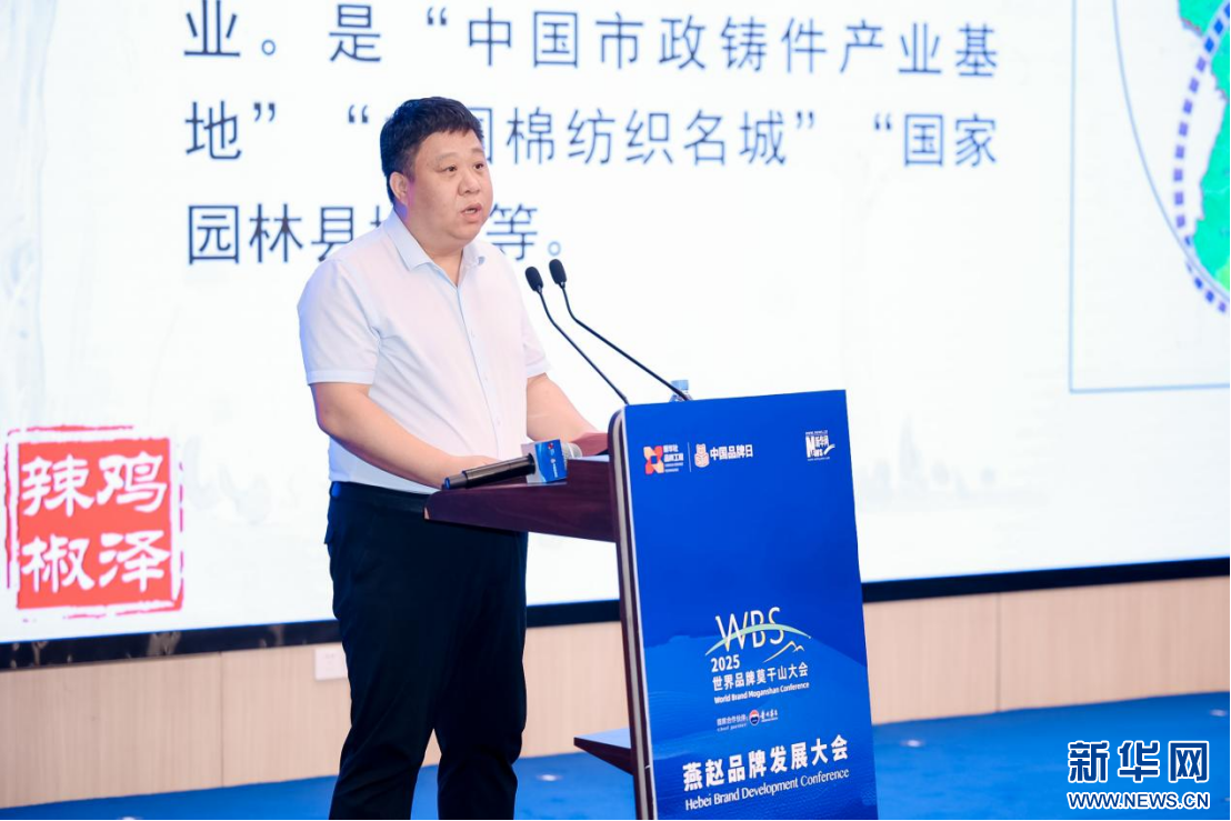 鸡泽县人民政府副县长李云鹏在大会上推介鸡泽特色产业品牌。新华网 发