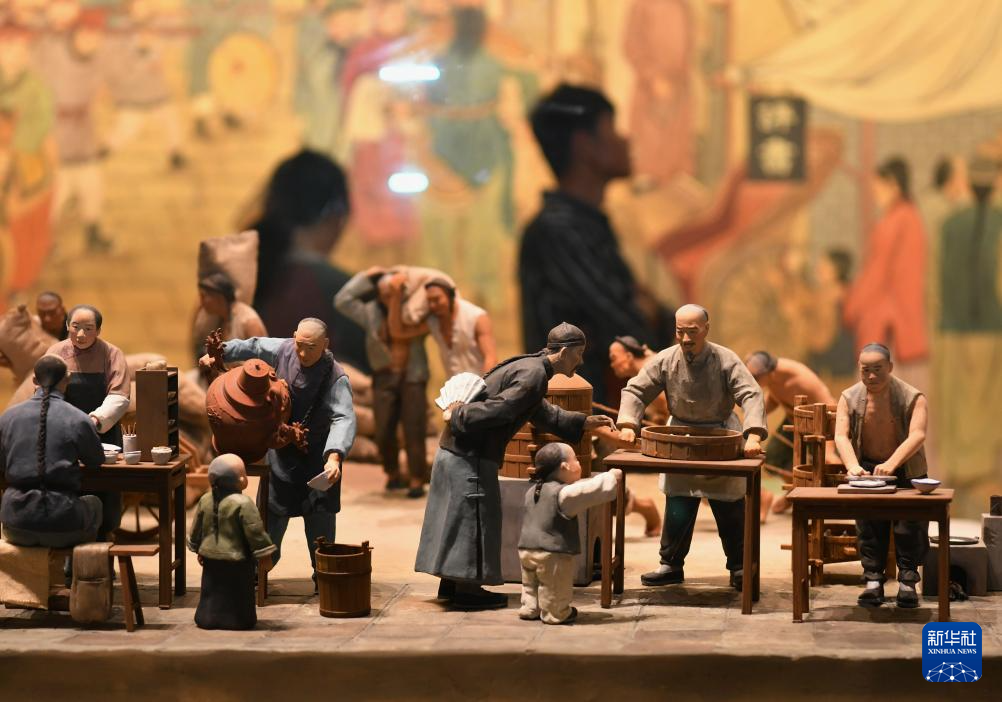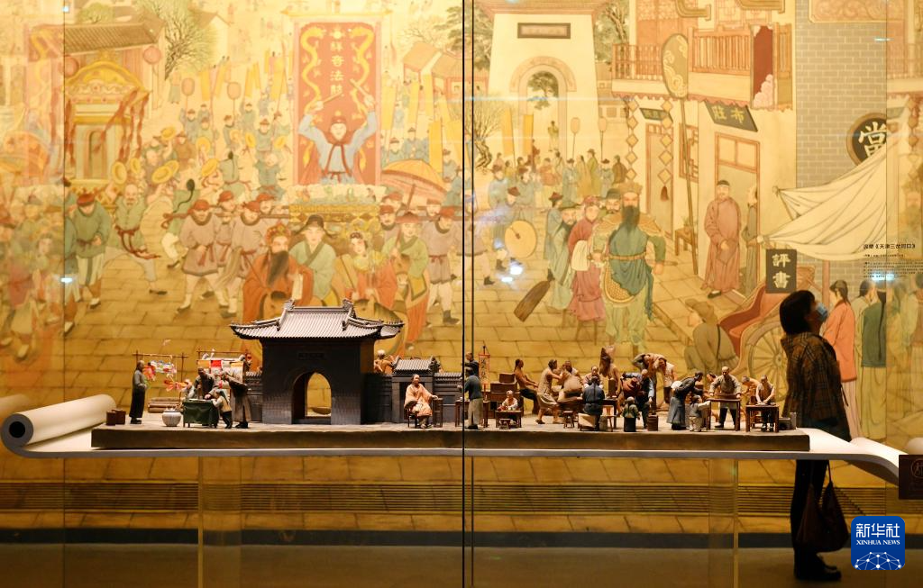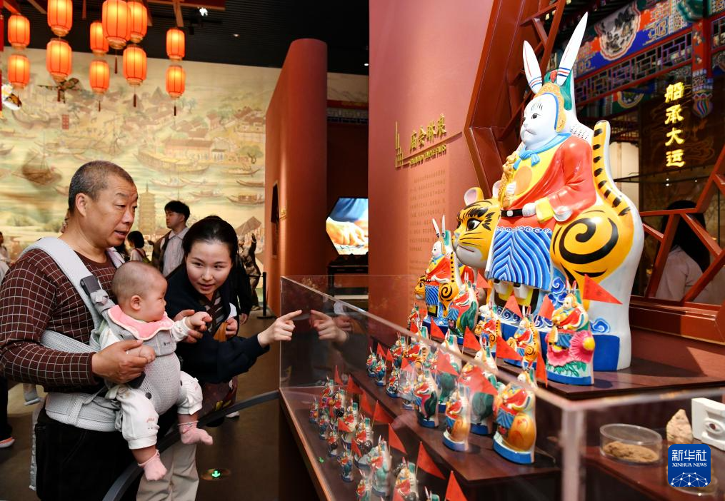 4月19日,游客在河北省沧州市中国大运河非物质文化遗产展示馆参观。