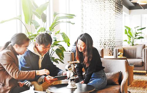 1月19日,企业代表在雄安新区中关村科技园洽谈业务。河北日报记者 刘光昱摄