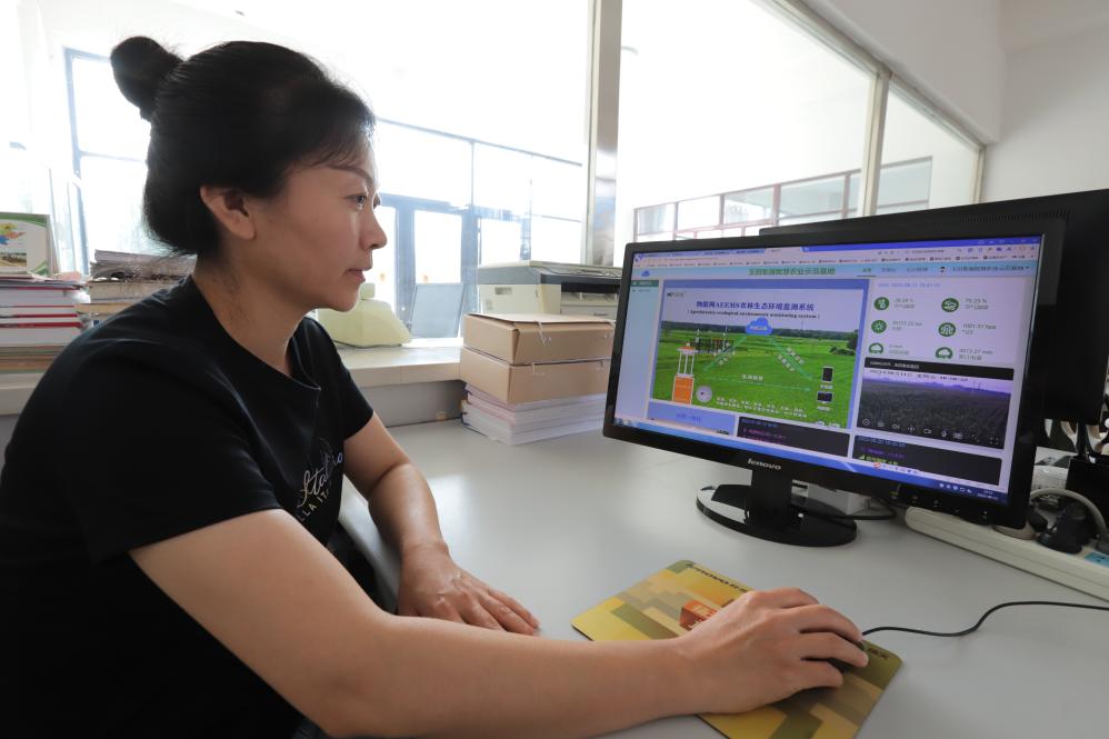 唐山市玉田县陈家铺镇集强农民专业合作社工作人员在电脑前进行远程观测。(受访者提供)