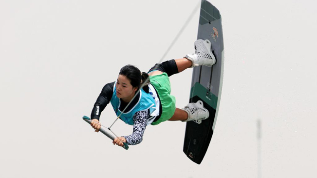 6月23日,中国选手熊音茵在尾波滑水女子公开组比赛中。最终,她以24.00分的成绩获得亚军。