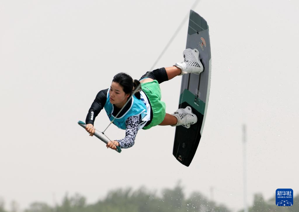 6月23日,中国选手徐露在尾波滑水女子公开组比赛中。最终,她以52.11分的成绩夺得冠军。