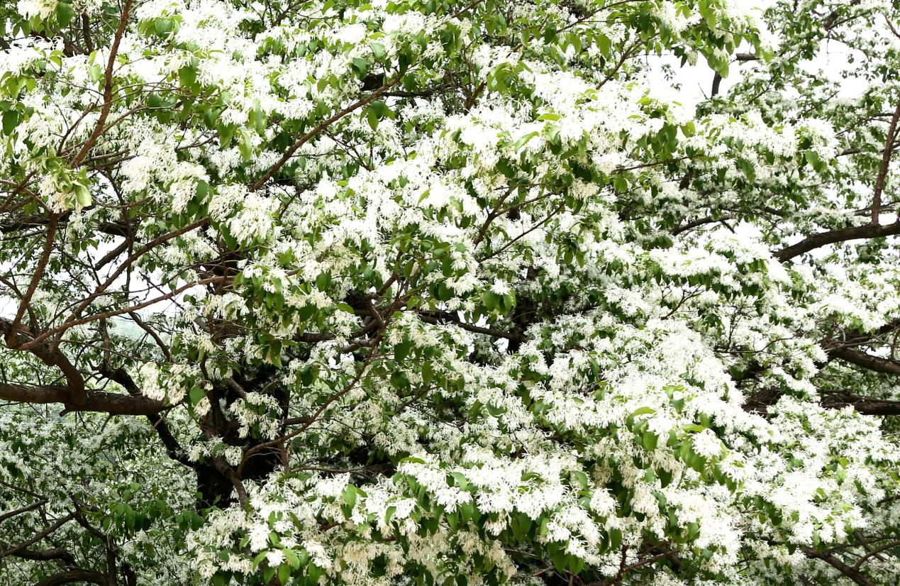 相传,此树是五代后周将军李进卿屯兵时所植。如今,千年已过,古流苏树以一身素白之颜、优雅之姿,在时光流淌间,向世人诉说着动人的故事。(王铁军 河北省林业和草原局供稿)