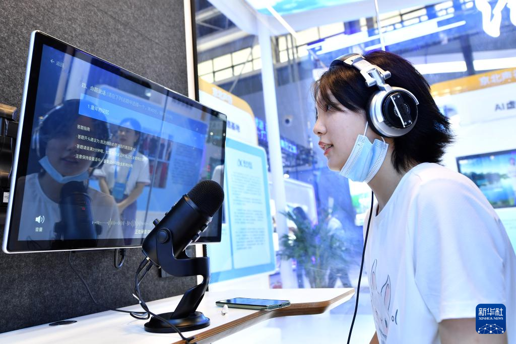 9月7日,参观者在本届数博会上体验科大讯飞ai朗读亭。新华社记者 骆学峰 摄