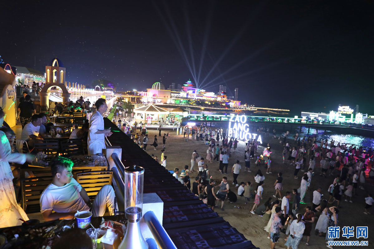 夜晚的北戴河碧螺塔酒吧公园。新华网 魏会博摄