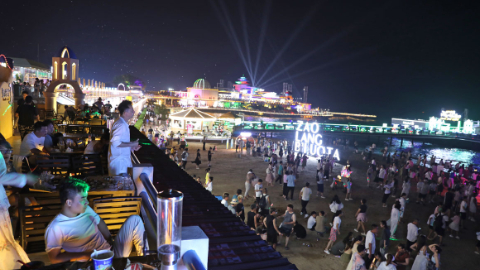 在北戴河碧螺塔酒吧公园的大型海上实景演出《浪淘沙·北戴河》现场,五千多人的场地座无虚席。一句话评价演出:恢弘大气、美轮美奂,五星好评。散场后,我看到检票口又排起了长龙,一问得知,游客太多了,一晚上要演两场。