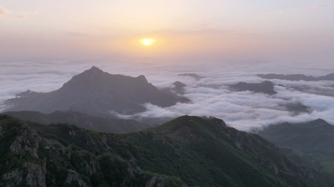 近日,位于承德市丰宁满族自治县的云雾山晨曦微露,浓密的云团弥漫陡峭的山壁间,宛如神秘的幻境。