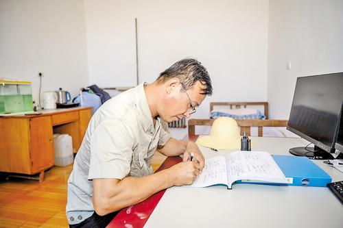 沈明俊正在记录当天的巡护情况。记者 赵杰摄影报道