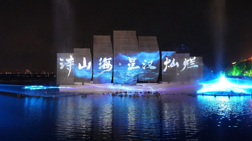 在公园另一侧,海上幻影秀正在上演,秦始皇策马挥鞭、魏武帝东临碣石、古老诗篇熠熠发光……短短一刻钟内,千年间往事跃然游客眼前。