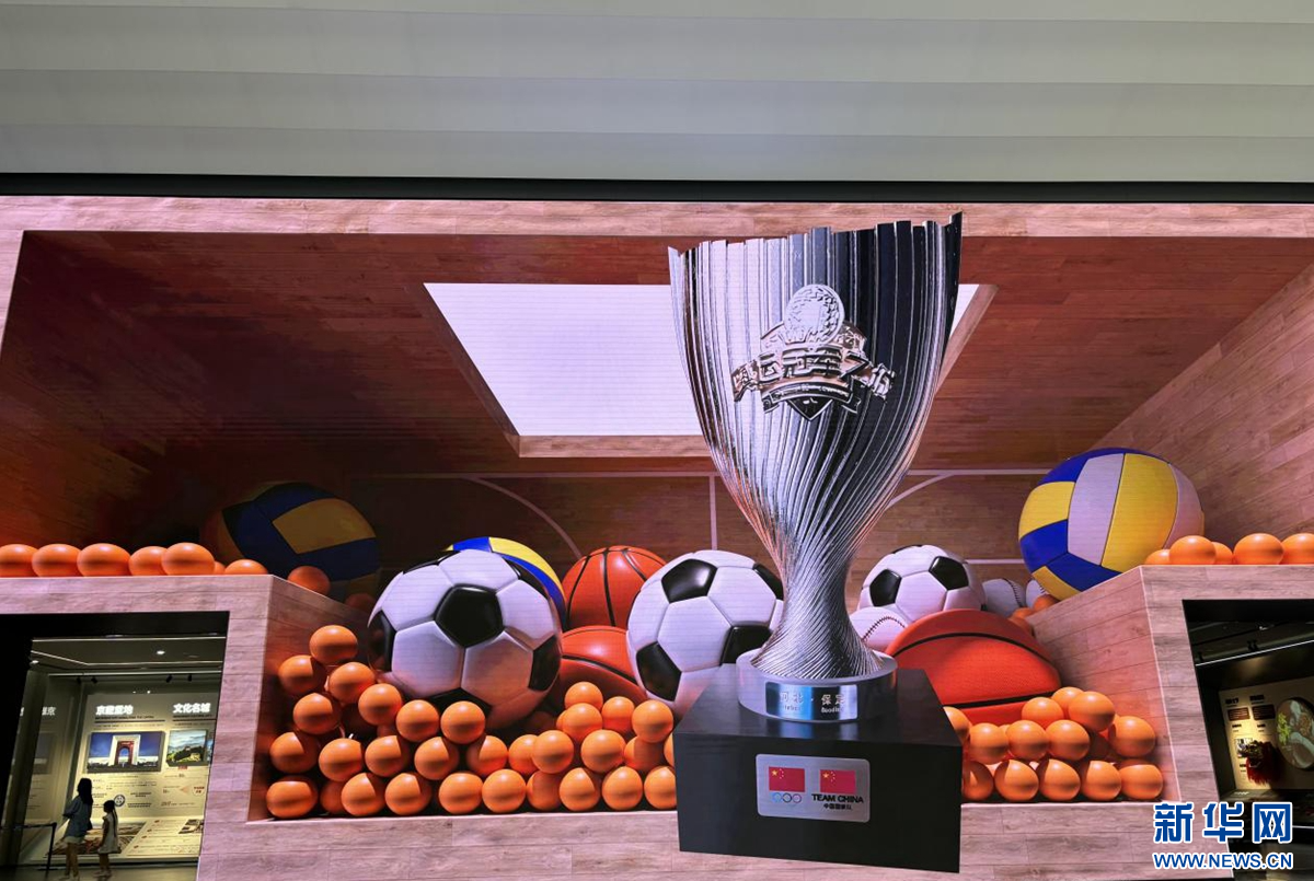 室内裸眼3d秀正在展示保定“奥运冠军之城”奖杯。新华网发 班静怡 摄