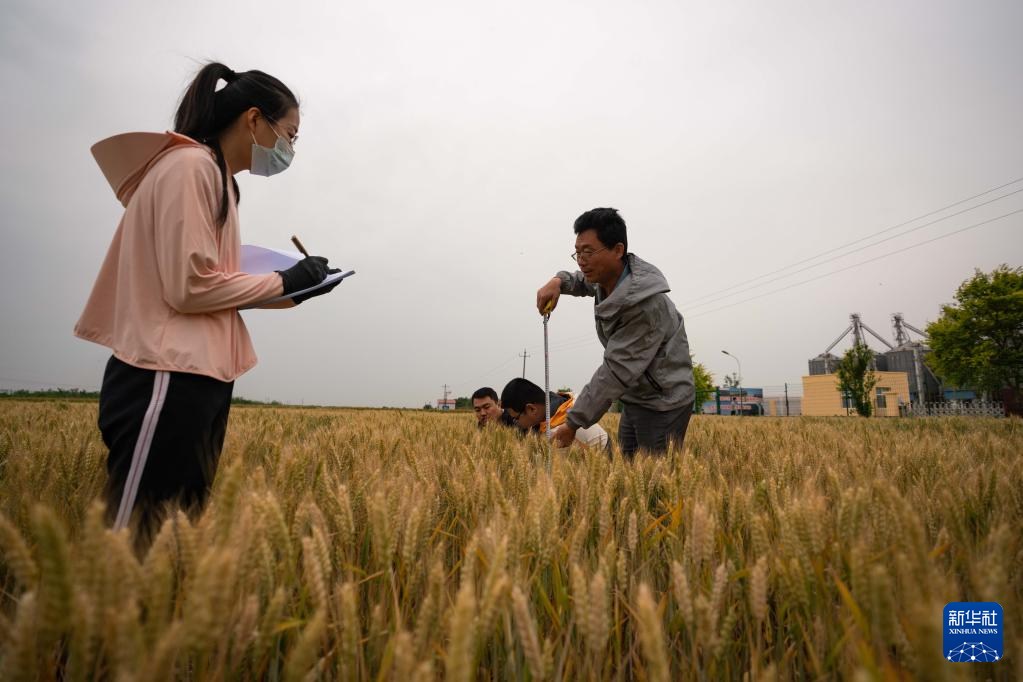 5月25日,在河北沧州渤海新区黄骅市中捷产业园区农科所旱碱麦繁种试验田里,技术人员对小麦进行测产。