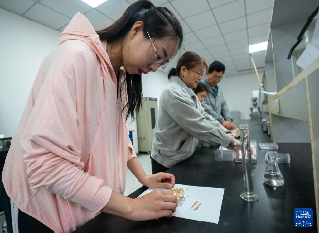 5月25日,在河北沧州渤海新区黄骅市中捷产业园区农科所种子检验室,技术人员在做小麦出芽率实验。