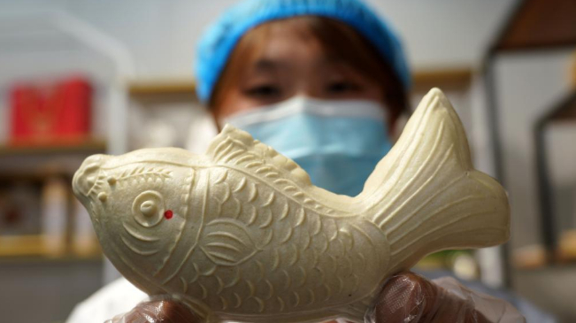 5月25日,在河北沧州渤海新区黄骅市一家农业科技公司尊龙pa旗舰厅官网的产品展示厅,工作人员展示面花产品。