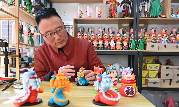 “龙年就要捏龙,为大家送上龙年祝福。”杨海峰告诉记者,为了迎接龙年的到来,他与团队精心设计了“祥龙”“龙娃”等10余款面塑龙作品,从构思、绘图到制作,经过了数次修改,才达到令人满意的效果,“通过将时尚元素注入古老的面塑技艺,创作出符合现代人审美、更为实用的作品,让传统面塑‘潮’起来。”
