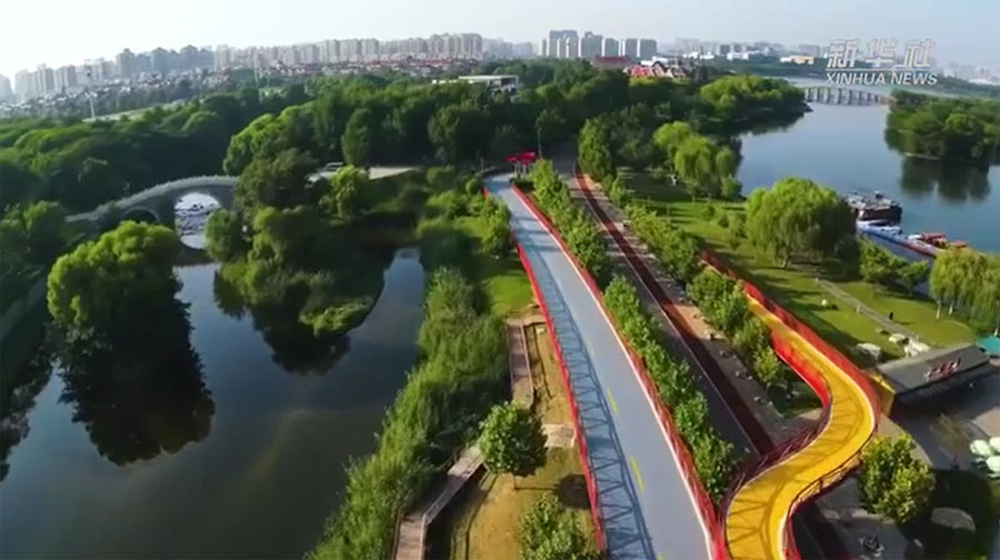 河北省乐亭县古滦河生态公园位于乐亭县县城东北部,这里曾是废弃多年的滦河故道。近年来,乐亭县对这一区域持续进行改造,实施生态修复,建成拥有各类乔灌木20万棵、水域面积22万平方米的城市“生态绿肺”,并配备绿道、游船、栈道等休闲娱乐设施。(新华社记者牟宇)