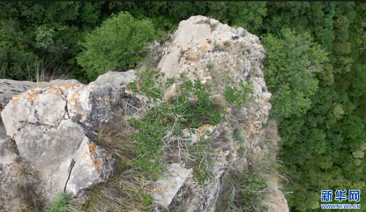 生长于悬崖峭壁之上的丁香叶忍冬野外种群。河北省林业和草原局供图