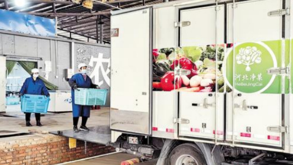 上午9时,河北净菜(北京)物流有限公司的两辆带有“河北净菜”标志的电动厢式货车,依次驶入河北元九农业。