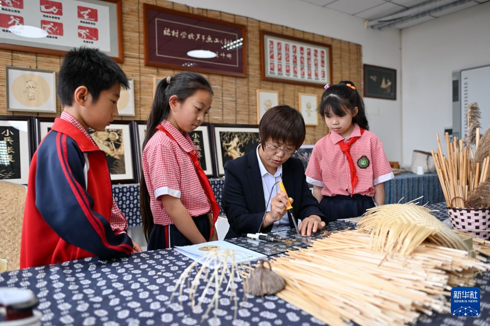雄安新区教师教授学生芦苇画制作技巧 牟宇 摄