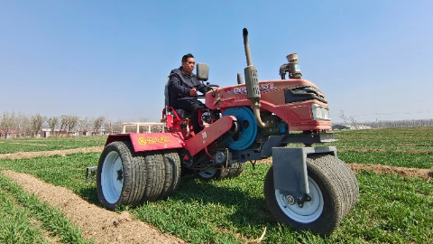15日一早,邱县兰庄村种粮大户兰大庆通过手机软件设定了小麦镇压机的作业线路,操控农机进行作业。兰大庆说,此前流转的农田相对分散,小麦镇压作业不仅效率低,还怕压错地,有的麦田重复镇压甚至会影响产量。2023年开始,在村委会帮助下,他又流转了一些农田,目前600多亩地连在一起,预计2台镇压机2天就可以全部完成。