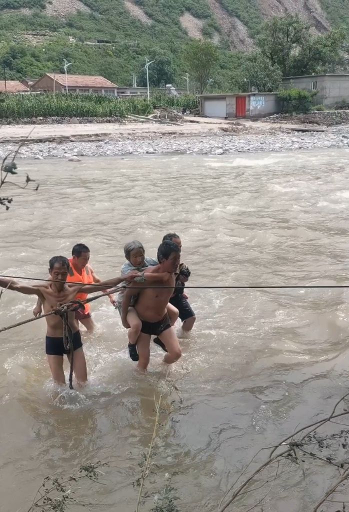 许术宝说,8月3日第一天救人时,他先把绳子绑在腰上,岸边有人拽着以防把他冲走。到了河对岸,他把绳子固定好,两边有市县干部和群众拽紧,然后背着行动不便的老人过河,年轻的在后面扶着,一条生命线就这样在河面上形成。