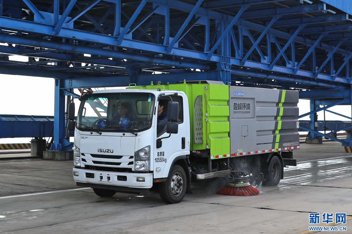 清扫车在秦皇岛港码头作业。新华网 魏会博摄