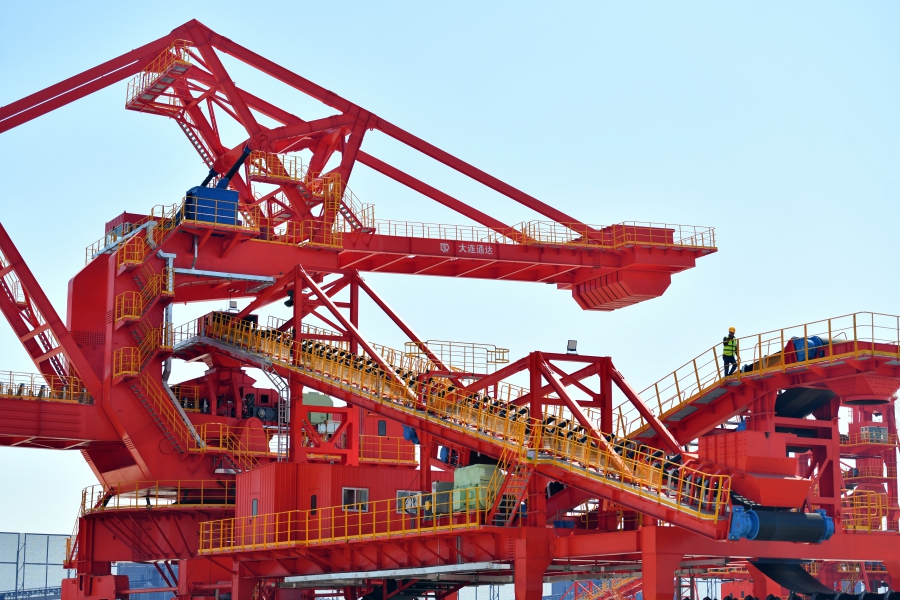 近日,英国博主亚当来到河北沧州黄骅港,参观了港口全流程抑尘、智慧运行等场景,在这座现代化港口感受中国绿色发展脉动。(新华社记者牟宇)