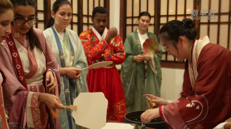 13名来自阿尔及利亚、喀麦隆、土耳其等国的留学生沉浸式体验了中国端午节的魅力。(新华社记者张硕)