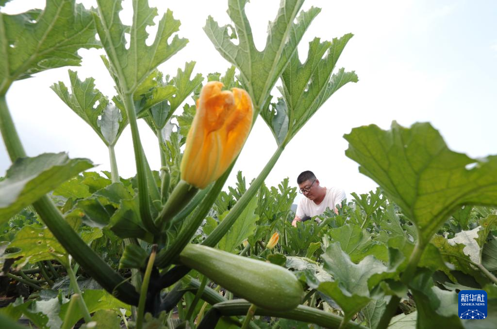 7月24日,河北省隆化县偏坡营镇一家蔬菜种植合作社的社员管护西葫芦。