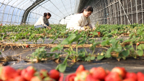 仲冬时节,在河北省唐山市迁西县燕山长城一带,多种植被由于季节原因陆续凋零,而滦阳镇铁门关村的种植大棚里却生机盎然。种植户林泽在大棚里穿梭,忙着采摘陆续成熟的草莓。