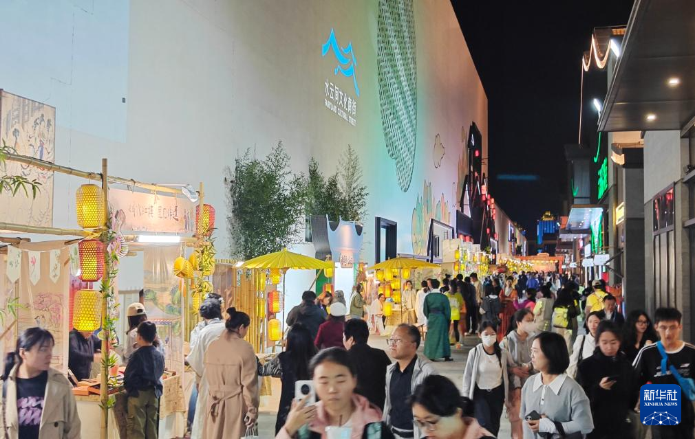 夜晚,廊坊水云间文化商街游人如织。新华社发(刘向摄)