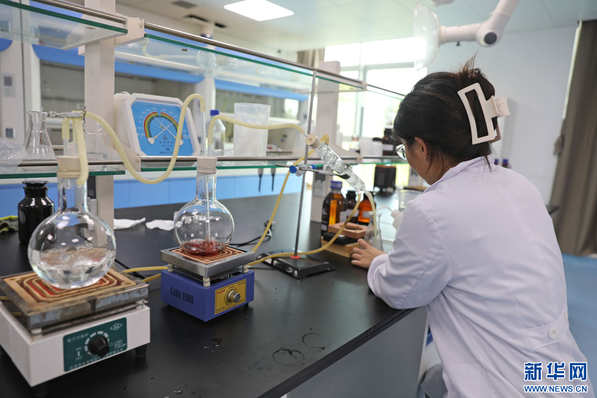 在北戴河生命科学园内的北京化工大学秦皇岛环渤海生物产业研究院,技术人员在检测葡萄酒的挥发酸含量。新华网 魏会博摄