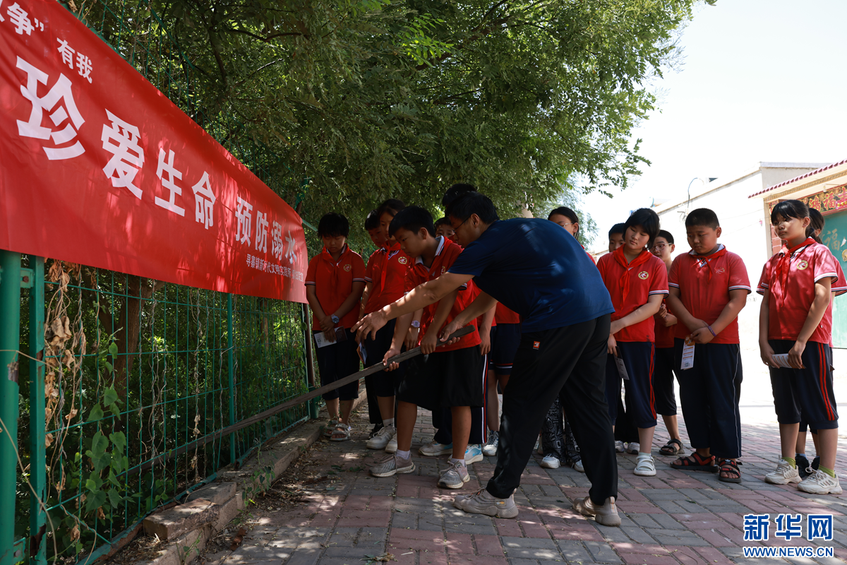 老师带领学生进行救援演练。新华网发 李世强 摄