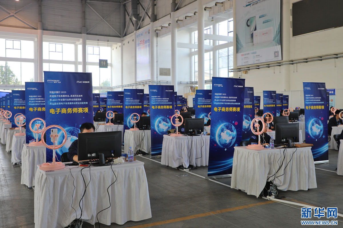 10月25日,在电子商务师技能比赛现场,选手们紧张比赛中。新华网 魏会博摄