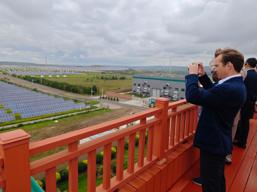 8月21日,驻华使节在位于河北张家口的国家风光储输示范基地参观。 新华社记者白林 摄