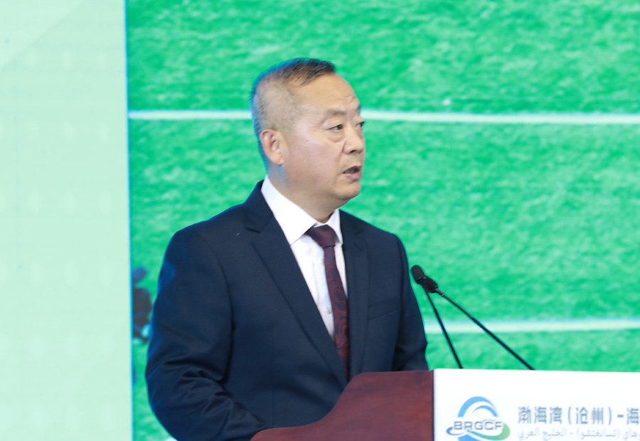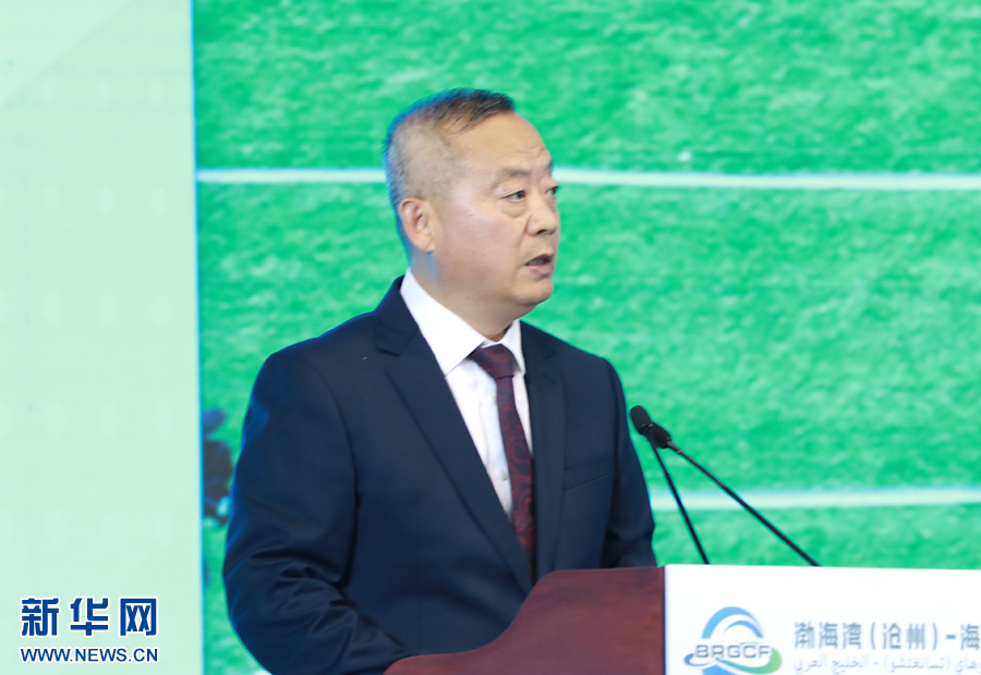新华网石家庄5月23日电 在近日举行的渤海湾(沧州)-海湾合作论坛开幕式上,沧州渤海新区管委会主任、黄骅市市长宫建军向海内外嘉宾推介沧州黄骅港。