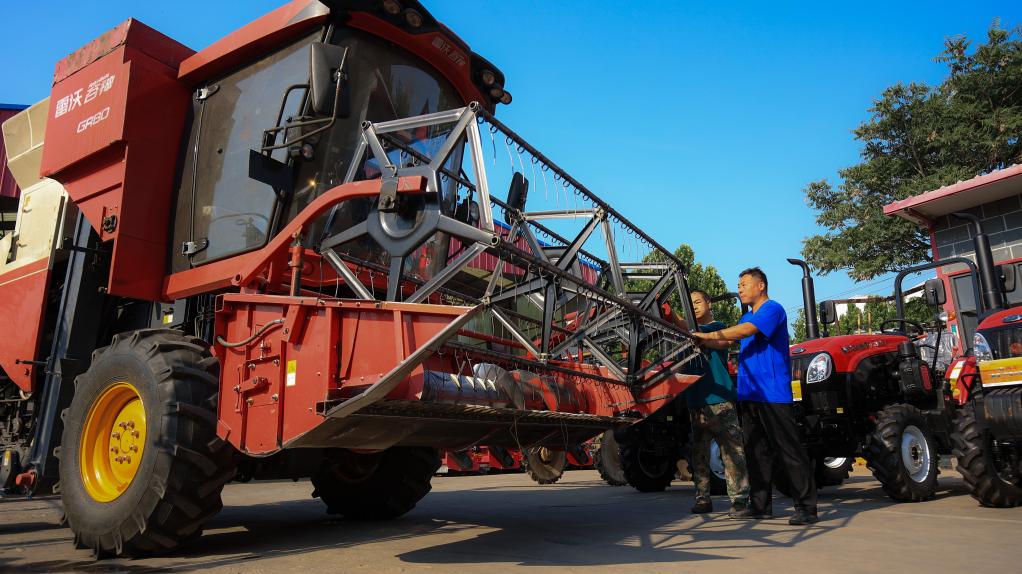 在河北省邢台市南和区一家农机合作社,农民在检修农机。(新华社记者 赵鸿宇摄)