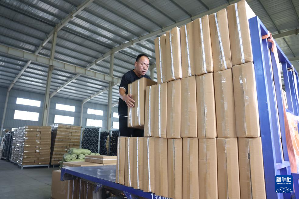 在邢台科帅儿童玩具有限公司,员工忙着装车。新华社记者岳文婷 摄