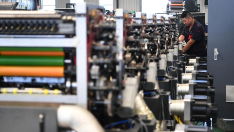 玉田县一家印刷机械企业车间,工人在进行组装工作。新华社记者牟宇 摄