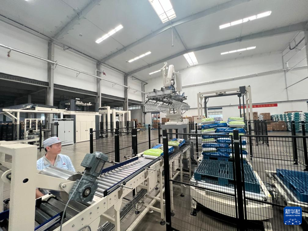 在荣喜宠物食品有限公司,机械臂进行成品码垛。新华社记者岳文婷 摄