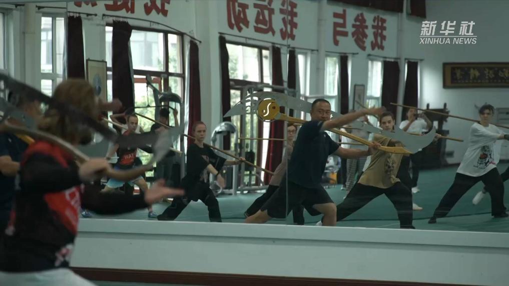 暑假期间,在河北省沧州市青县盘古文武学校八极拳国际训练基地,来自俄罗斯的16名学员在武术老师指导下,一板一眼地习练武术基本功。