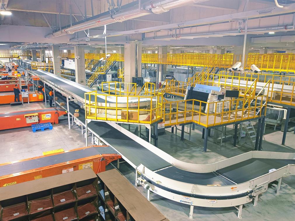在位于廊坊固安县的申通快递华北转运中心,近百个进出港卸货口同时操作,dws一体机、自动摆轮、交叉带等数字化设备同步运转。一件快递被放到传送带上,随即被自动扫描、分拣、直到装车,整个过程不到10分钟。