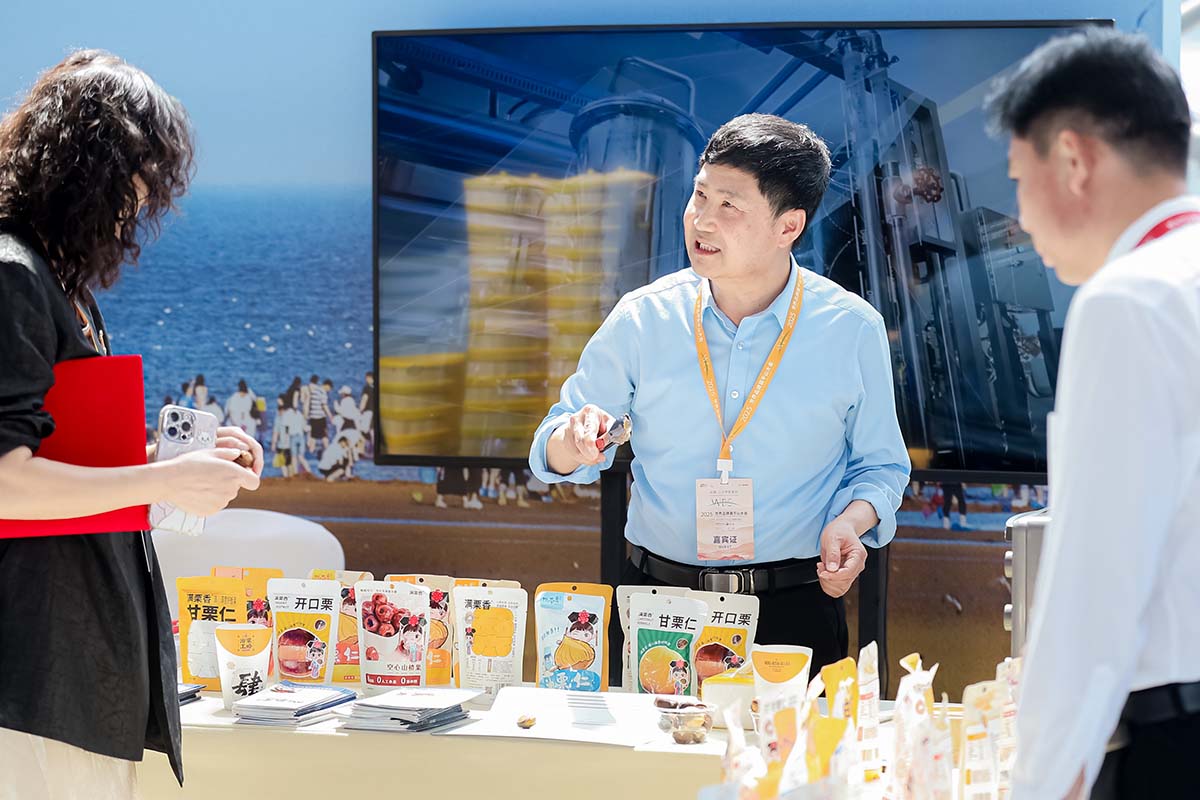 秦皇岛百峰食品有限公司工作人员为嘉宾介绍产品。