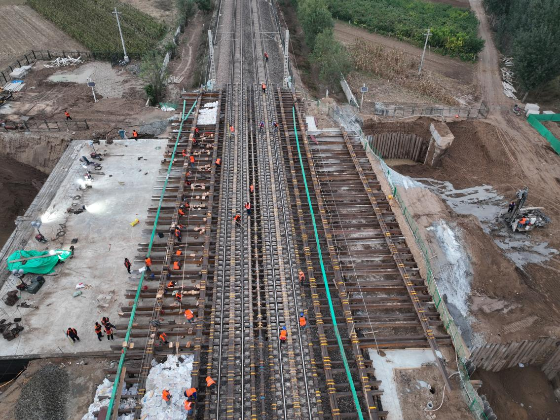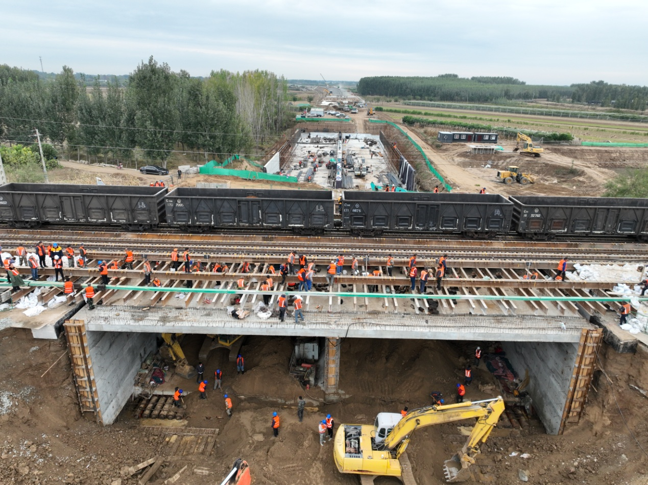 据介绍,曲港高速公路肃宁互通至京台高速段共有两座下穿铁路框架桥。目前,下穿朔黄铁路框架桥顶进工程也在稳步推进中。(胡学敏、张治平 沧州日报社供稿)