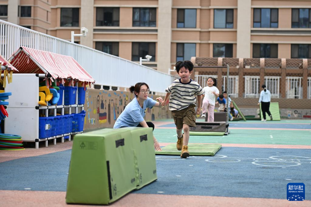 5月23日,雄安容和悦容幼儿园的孩子们在室外活动。