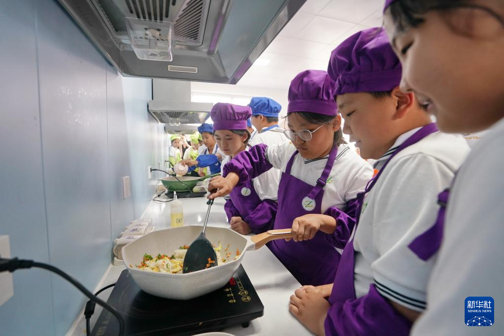 5月22日,北京市朝阳区实验小学雄安校区的学生在厨艺课上制作美食。