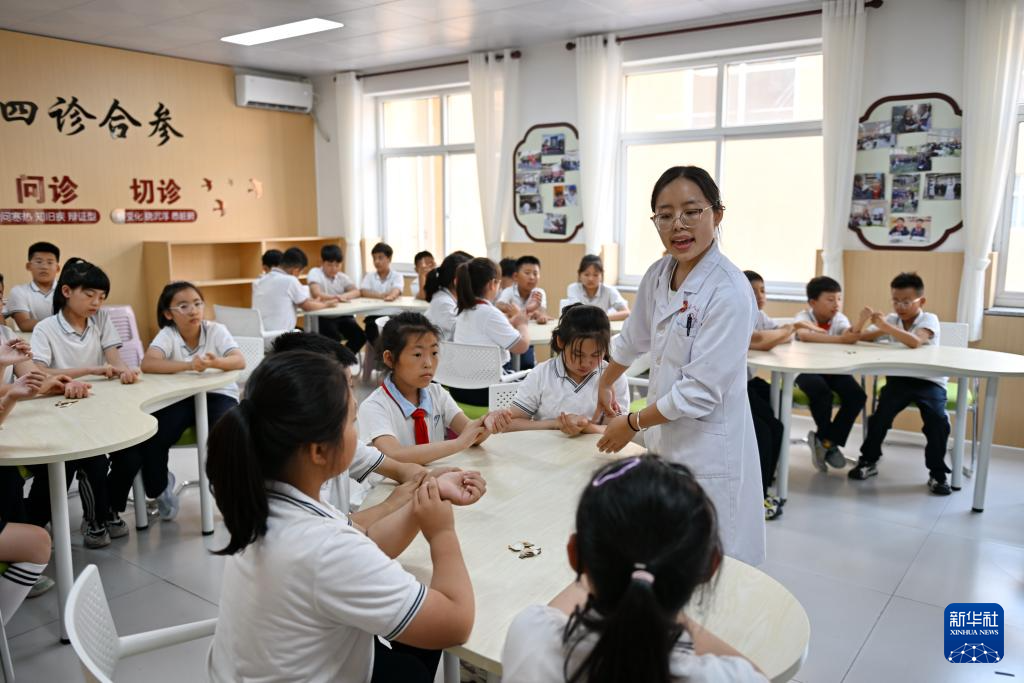 5月22日,北京市朝阳区实验小学雄安校区的学生在学习中医知识。