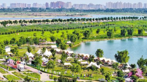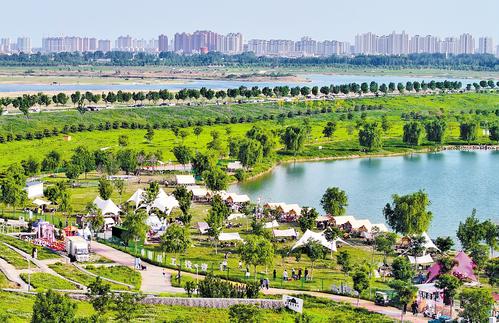 近日,游客在石家庄市滹沱河畔的廉州云湖风景区享受露营乐趣。河北日报记者 史晟全摄