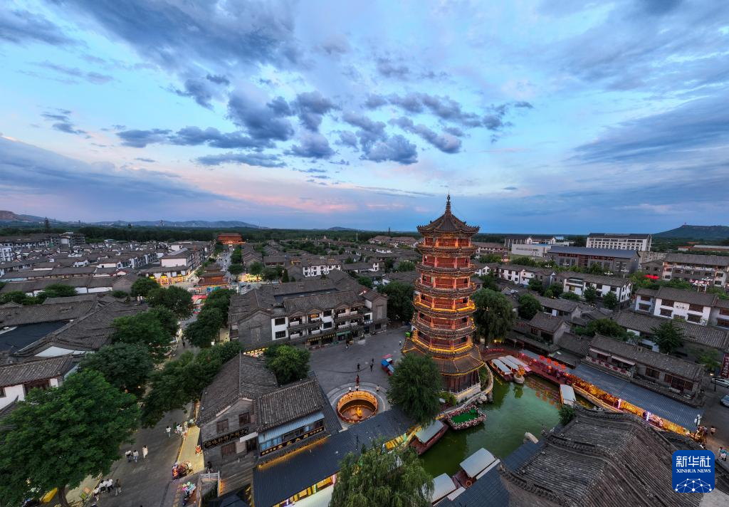 夜幕下的滦州古城景区(6月7日摄,无人机照片)。