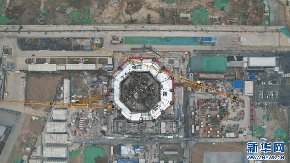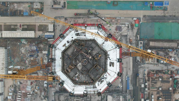 3月27日拍摄的中国中化大厦建设现场(无人机照片)。当日,中国中化大厦实现核心筒主体结构封顶。新华社记者 牟宇 摄