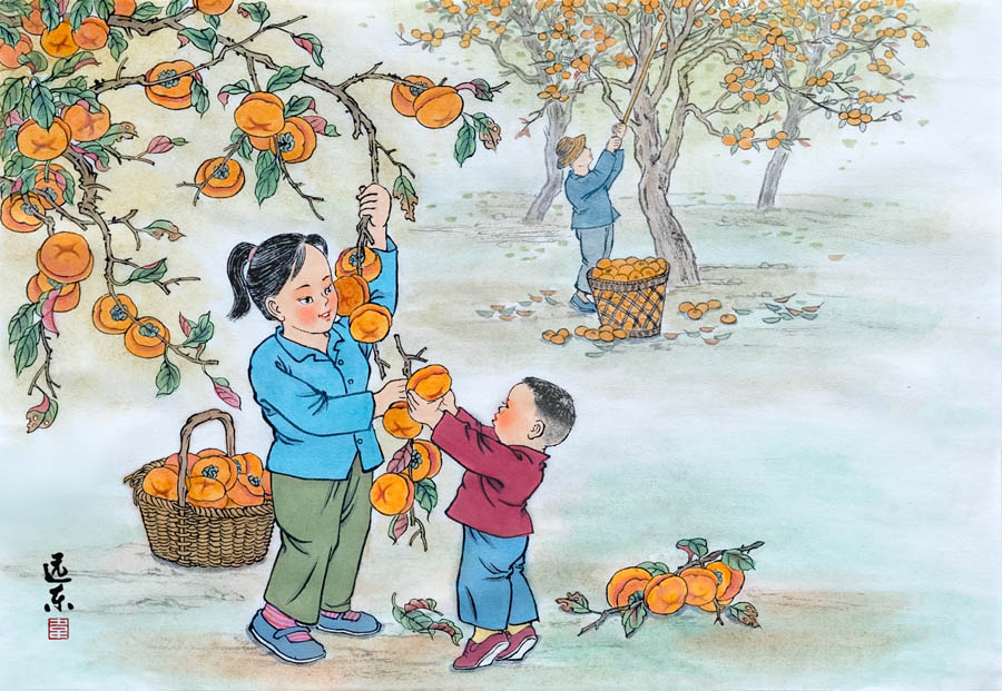 此时的柿子皮薄、肉鲜、味美